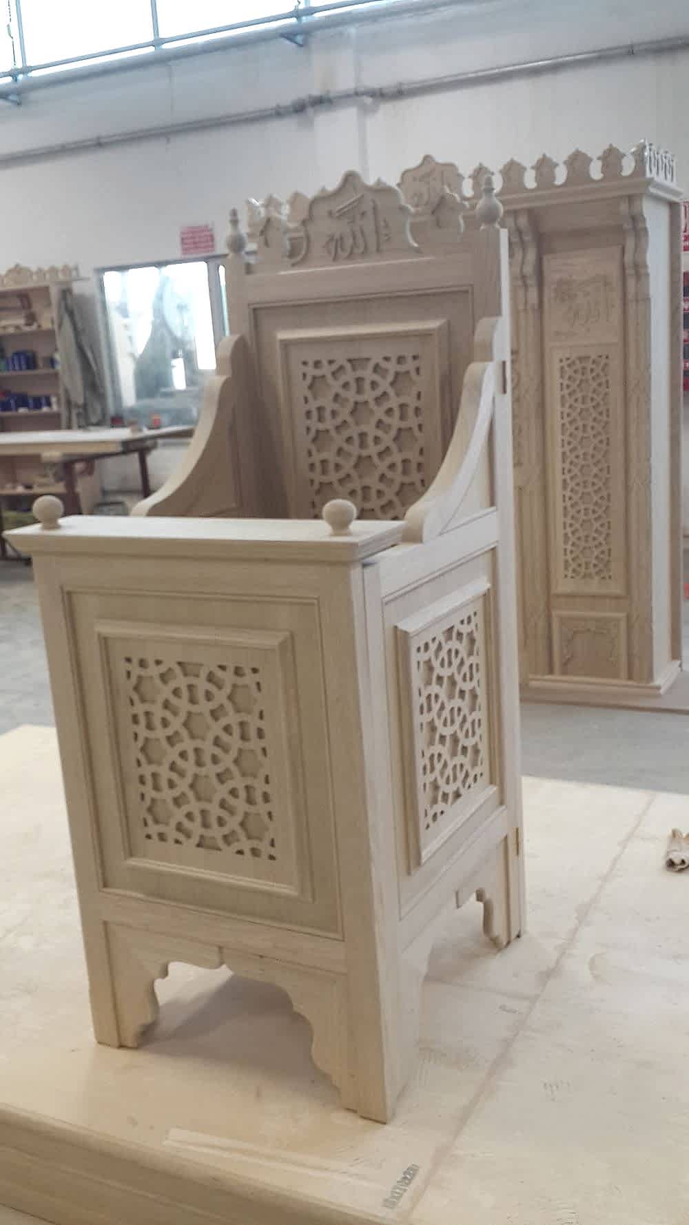 Dantel Motifli Cami Kürsüsü, geleneksel dantel desenlerinden esinlenerek tasarlanan zarif işçiliğiyle caminizin dekorasyonuna estetik bir katkı sağlar. Sanatsal detaylarla bezenmiş bu kürsü, hem göz alıcı bir görsellik sunar hem de ibadet alanınıza manevi bir zarafet katar.